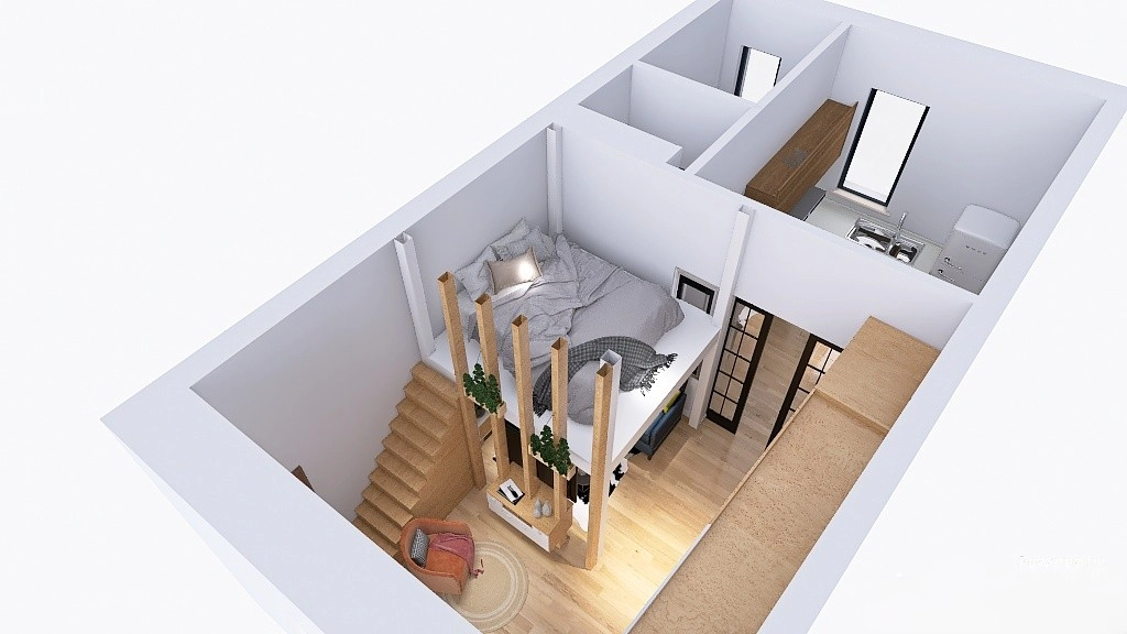 Progetto di micro-architettura studiato per valorizzare e ottimizzare al massimo una piccola abitazione di soli 30 mq. L’intervento ha previsto l’inserimento di un innovativo letto a soppalco elettrico, che consente di trasformare con facilità il soggiorno in zona notte, garantendo massima flessibilità d’uso in base alle esigenze quotidiane.